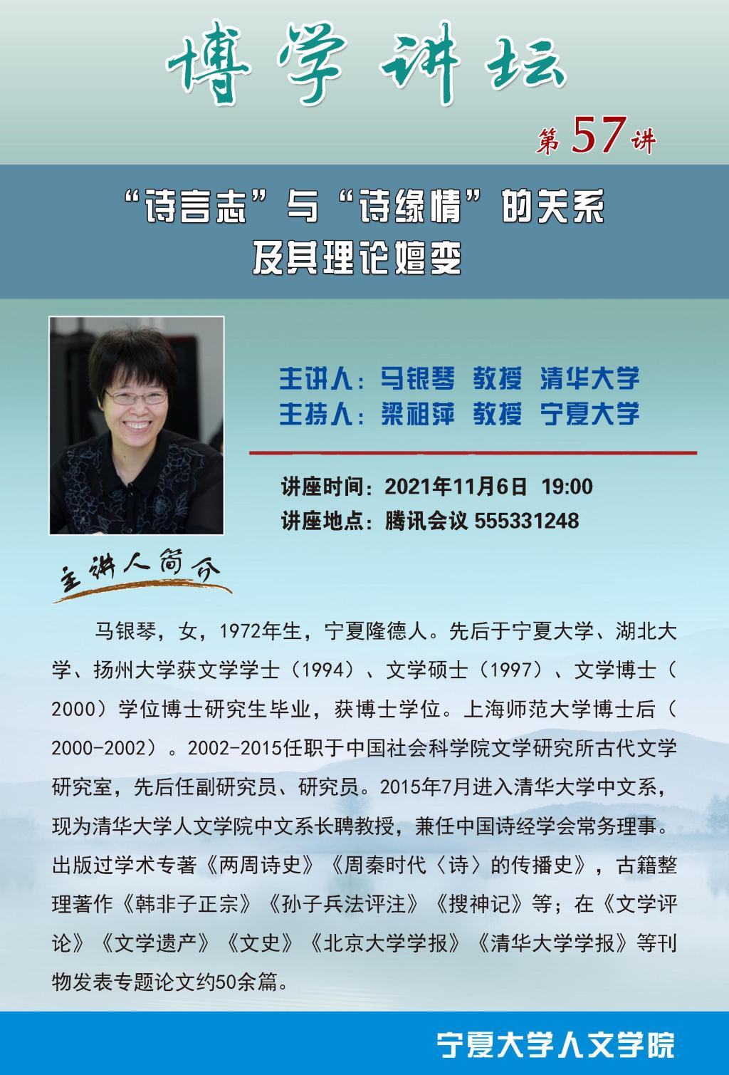 马银琴,女,1972年生,宁夏隆德人。先后于永利集团304官网、湖北大学、扬州大学获文学学士(1994)、文学硕士(1997)、文学博士(2000)学位博士研究生毕业,获博士学位。上海师范大学博士后(2000-2002)。2002-2015任职于中国社会科学院文学研究所古代文学研究室,先后任副研究员、研究员。2015年7月进入清华大学中文系,现为清华大学人文学院中文系长聘教授,兼任中国诗经学会常务理事。出版过学术专著《两周诗史》《周秦时代〈诗〉的传播史》,古籍整理著作《韩非子正宗》《孙子兵法评注》《搜神记》等;在《文学评论》《文学遗产》《文史》《北京大学学报》《清华大学学报》等刊物发表专题论文约50余篇。