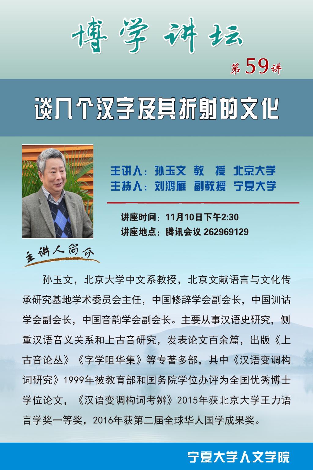 孙玉文,北京大学中文系教授,北京文献语言与文化传承研究基地学术委员会主任,中国修辞学会副会长,中国训诂学会副会长,中国音韵学会副会长。主要从事汉语史研究,侧重汉语音义关系和上古音研究,发表论文百余篇,出版《上古音论丛》《字学咀华集》等专著多部,其中《汉语变调构词研究》1999年被教育部和国务院学位办评为全国优秀博士学位论文,《汉语变调构词考辨》2015年获北京大学王力语言学奖一等奖,2016年获第二届全球华人国学成果奖。