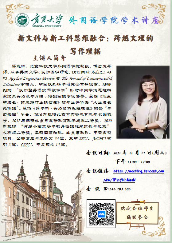 讲座题目:新文科与新工科思维融合:跨越文理的写作理据