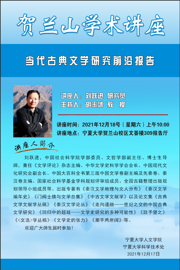 讲座地点:永利集团304官网贺兰山校区文荟楼309报告厅