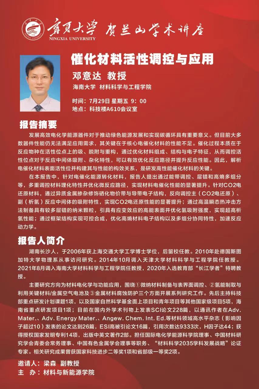 邓意达,湖南长沙人,2006年获上海交通大学工学博士学位,后留校任教。2010年赴德国斯图加特大学物理系从事访问研究。2014年10月调入天津大学材料科学与工程学院任教授。2021年8月调入海南大学材料科学与工程学院任教授,2020年入选教育部“长江学者”特聘教授。