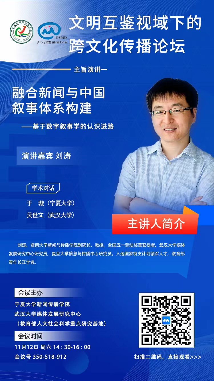 刘涛,暨南大学新闻与传播学院副院长、教授,全国五一劳动奖章获得者,武汉大学媒体发展研究中心研究员,复旦大学信息与传播中心研究员。入选国家特支计划领军人才,教育部青年长江学者。