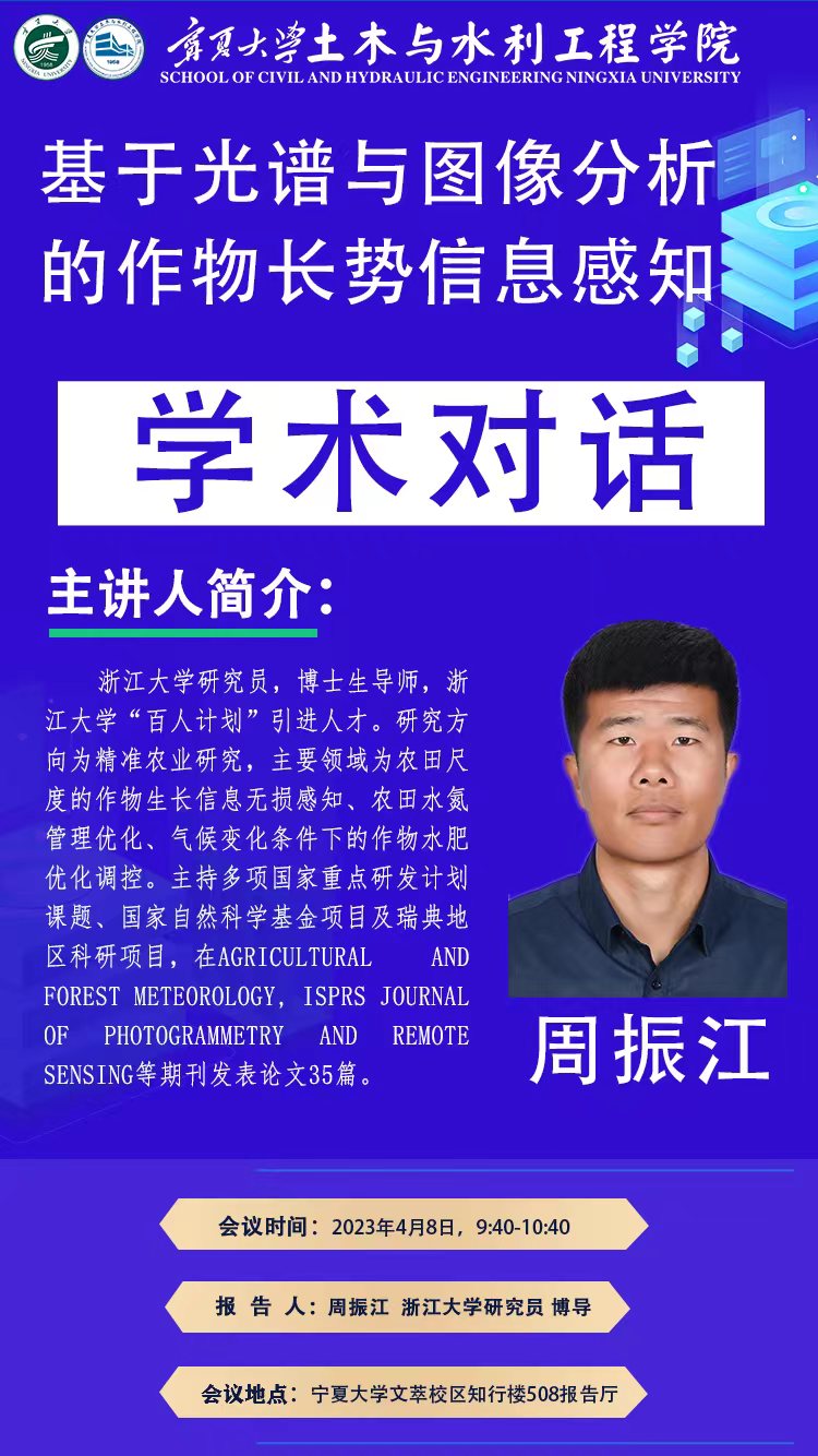 周振江博士,研究员,博士生导师,浙江大学“百人计划”引进人才。从事作物生长信息无损感知,农田水氮管理优化研究。在AgriculturalandForestMeteorology,ISPRS Journal of PhotogrammetryandRemoteSensing等期刊发表论文35篇。含第一/通讯作者14篇,主持/参与多项国家重点研发计划课题、国家自然科学基金项目、瑞典地区科研项目。
