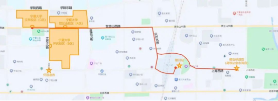 (1)银川火车站:打车或步行至维也纳酒店(银川高铁店),6-10分钟。