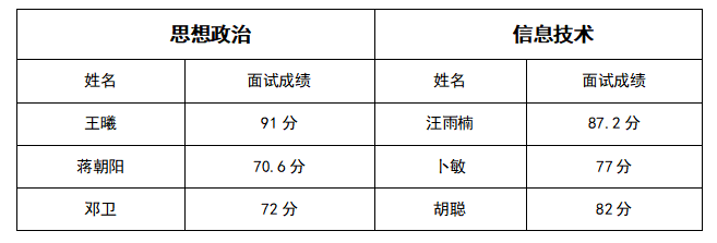 根据《2024年永利集团304官网附属中学公开招聘工作人员面试公告》,永利集团304官网附属中学于2024年6月1日对6名资格复审合格人员进行面试,现将面试成绩予以公示,公示期为5个工作日。公示时间:2024年6月1日—6月7日。公示期间,如有异议,请向学校办公室反映。