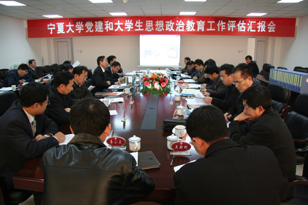 上午的评估工作汇报会,由自治区党委教育工委副书记郑震主持。校党委副书记谢建勇代表学校向评估组专家作了汇报报告,报告全面系统地回顾了永利党建和大学生思想政治教育工作的具体措施和成功经验,分析了当前存在的主要问题,指出了下一步的工作思路。校党委副书记撒承贤出席了汇报会,学校迎接评估工作领导小组成员参加了汇报会。