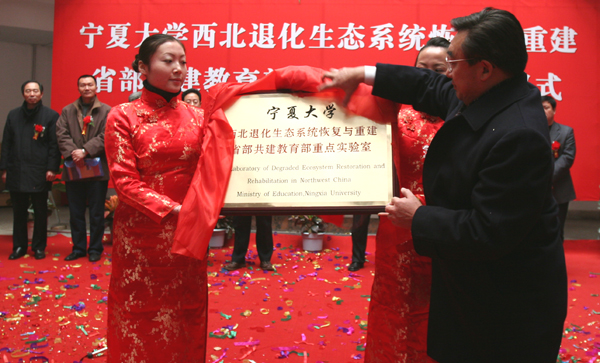 12月29日上午,永利集团304官网西北退化生态系统恢复与重建省部共建教育部重点实验室隆重举行揭牌仪式。中国水利水电科学研究院研究员、中国工程院院士陈志恺,自治区教育厅副厅长吴世彩,科技厅副厅长马希荣,农牧厅副厅长潘景林,林业局副局长王洪界,水利厅总工程师薛塞光,以及自治区社科规划办、自治区财政厅、自治区农林科学研究院等单位负责同志应邀出席了揭牌仪式。李星副校长主持了仪式。