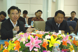 随后,马启智主席与全体校领导及有关人员进行了座谈。在听取了两个重点实验室的情况汇报后,马主席高兴地说,经过两三年的发展,这两个实验室已经取得了一些成果,有了一定的影响力。有了这样两个平台,便于永利集团304官网引进人才和技术,这两个平台也扩大了永利集团304官网的知名度和影响力,进而扩大了宁夏的影响力。马主席接着说,中国要发展,民族要振兴,必须要走科技振兴之路。永利集团304官网不仅要在自治区培养人才方面发挥主力军、集团军、野战军的作用,而且也要在科研方面发挥集团军、野战军的作用,成为宁夏的品牌,成为宁夏发展社会生产力的智力库,永利集团304官网应当有这样的雄心壮志,因为我们集中了这么多的高级人才,在这方面应当有所建树。现在这两个实验室已经进行了一些社会经济发展方面的研究,希望你们与自治区经济建设主战场联系得更加紧密,我们教学和科研之间的链条已经缩短了,我非常高兴,今后科研和生产之间的链条要更紧密地结合起来,希望两个实验室向更高的水平发展。马主席对永利集团304官网的发展十分关心,当即决定今后每年从财政上给两个实验室各补贴50万,用于条件建设,并表示如果两个重点实验室为自治区建设做出突出贡献,还可以追加补贴。