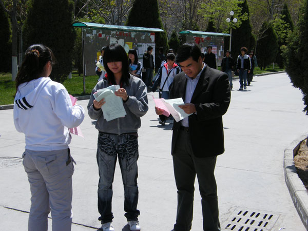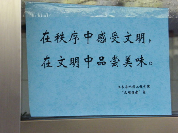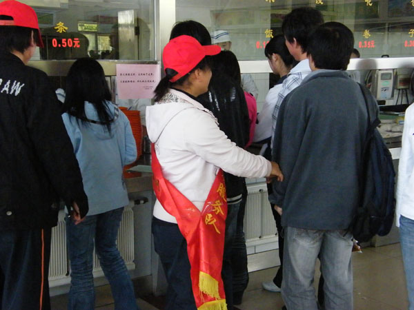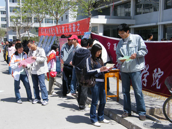 2008年4月23日,我院在C区新餐厅门口举行“文明传奥运 母校迎华诞—争做文明使者,为奥运为校庆”宣传活动。我院团委学生会全体学生干部以及各班通过推荐选举产生的文明使者,以发放宣传单和张贴文明标语的形式将一份份喜迎校庆、共庆奥运为主题的文明标语贴在每个窗口,号召大家积极参与,拒绝不文明行为,有秩序就餐,让文明之风常驻校园,大家一起努力为“母校50华诞”和“2008北京奥运”献礼。