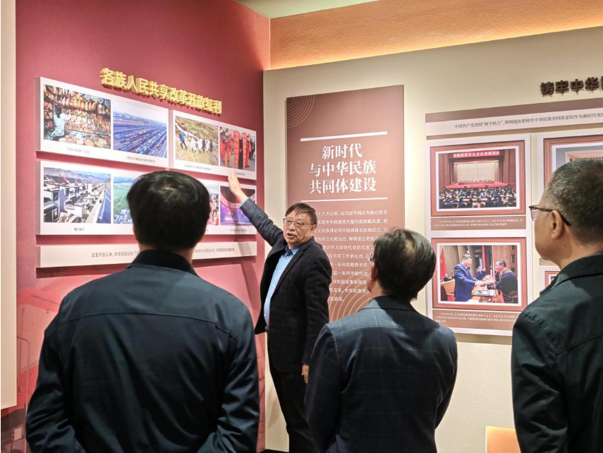 揭牌仪式后,嘉宾与师生共同参观了基地展厅,深入了解中华民族共同体的历史渊源与时代价值。