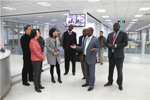 会后,Mbugua Kinuthia郡长一行登上主楼楼顶鸟瞰永利集团304官网全景并参观了C区图书馆。