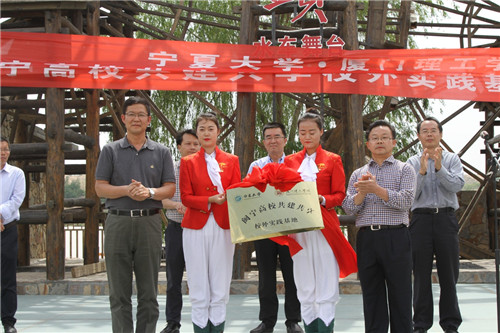 尤国顺与周运生代表两校为实践基地揭牌。苏海涛向沙坡头景区授牌。