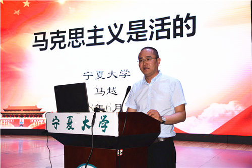 马越以“马克思主义是活的”为题,从什么是马克思主义、为什么要坚持马克思主义、怎样坚持和发展马克思主义、怎么做中国特色社会主义合格建设者和可靠接班人四个方面,结合生动的案例深入论述了马克思主义的真理力量。他认为,要深入把握马克思主义的新内涵、深刻领会马克思主义新特征、准确认识马克思主义是习近平新时代中国特色社会主义思想活的灵魂,要将“思政课程”与“课程思政”紧密结合,贯彻落实“爱国、励志、求真、力行”的新要求,通过“信”“感”教育,培养中国特色社会主义合格建设者和可靠接班人。