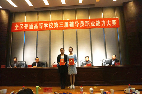本届大赛历时四天,分初赛、决赛两个阶段,共有来自全区15所高校的46名选手参加。大赛由笔试(基础知识测试和网文写作)、主题班会、案例分析、主题演讲和谈心谈话五个环节组成。初赛为笔试、主题班会和案例分析三个环节,在案例分析环节,李英英举止大方、语言流畅、结合自身工作经历和对学生工作的理解,沉着冷静地解答学生工作中的问题,全面地展现了自身的素质和水平,获得此环节全场最高分。决赛分为主题演讲、谈心谈话两个环节,面对来自全区各高校的优秀选手,李英英老师凭借丰富的工作经验、扎实的理论功底、过硬的职业能力和良好的心理素质,一路过关斩将,荣获一等奖。学院尹瑛和吴云柯老师也在比赛中取得了不错的成绩,三位老师的优异表现全方位展示了新华学院辅导员的综合素质和精神风貌。