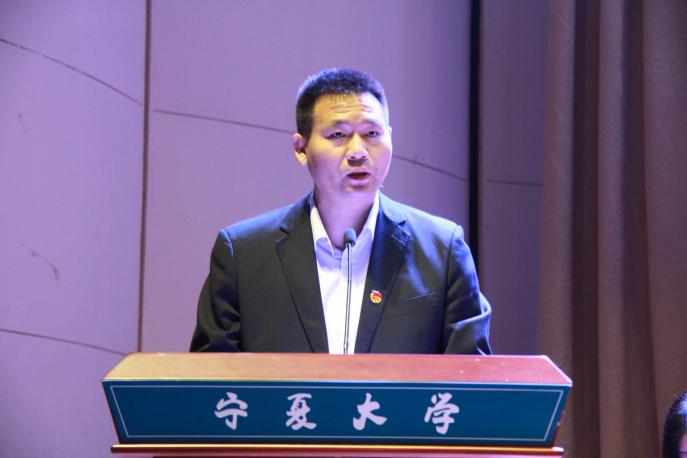 28日上午,在大会开幕式上,自治区学联驻会主席韩春波、宁夏医科大学学生会主席于克娜分别代表自治区学联、兄弟院校致贺词。