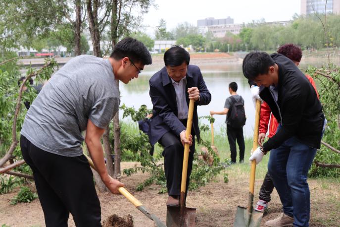 4日下午,校领导金能明、何建国、赵利宁、马应虎在怀远校区金波湖桃李园与校各职能部门负责人、教学科研单位负责人、离退休老干部代表、校友代表、一线教师代表以及学生代表200余人一起参加了植树活动。