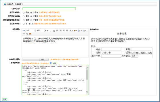 表单参数主要有:表单是否需要登录、用户是否已经登录、表单提交地址、表单内容代码、以及判断表单是否有验证码。