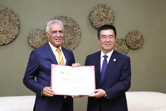 金能明书记对摩洛哥哈桑一世大学校长纳吉蒙丁、副校长法赫里参加永利60周年校庆表示感谢,希望永利集团304官网和摩洛哥哈桑一世大学在推动中国和摩洛哥友好发展中发挥更大的作用同时,同时,希望继续利用好两国之间的合作深化两校之间的合作。