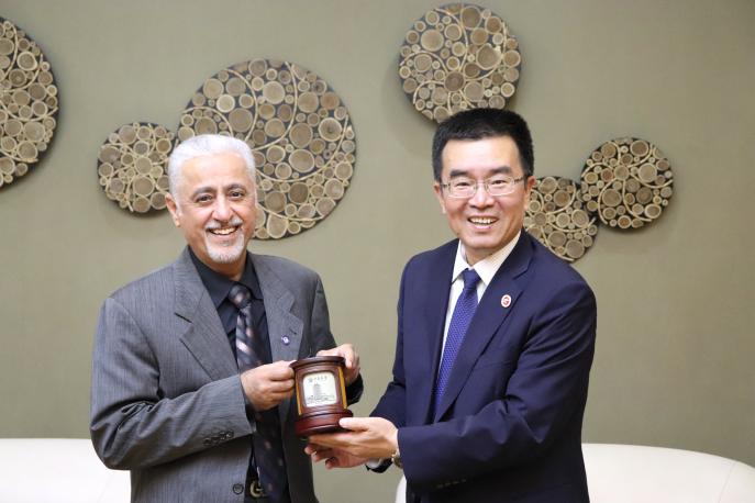 金能明书记感谢阿联酋迪拜大学校长伊萨·巴斯塔基参加永利60周年校庆,表示永利集团304官网与迪拜大学合作的合作由来已久,双方有着牢固的合作基础和共同的合作愿景,希望双方继续加强合作。伊萨·巴斯塔基校长表示,将努力为促进中阿文化交流,为加强“一带一路”教育合作共建提供平台、桥梁与机遇。