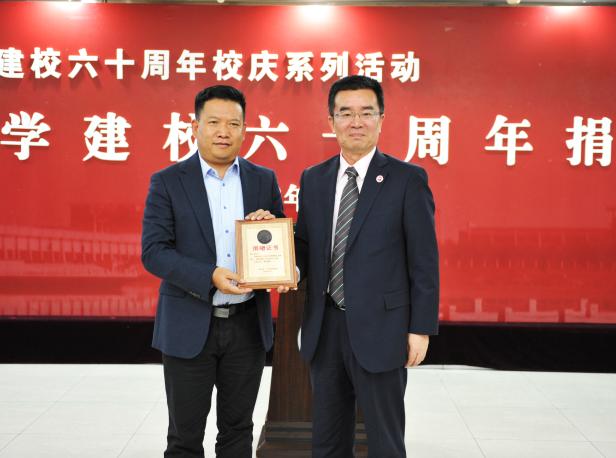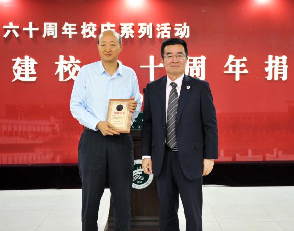 金能明书记和何建国校长分别为捐赠单位和捐赠团体代表颁发捐赠证书。