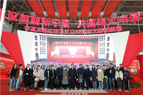 【永利集团304官网新闻中心讯 新闻传播学院】10月17日,校党委书记金能明与新闻传播学院学生党员、2016级新闻一班的全体同学一同参观了宁夏回族自治区成立60周年大型成就展。