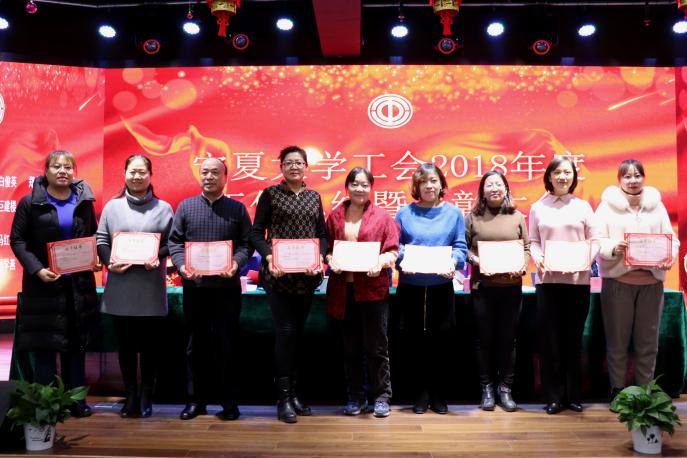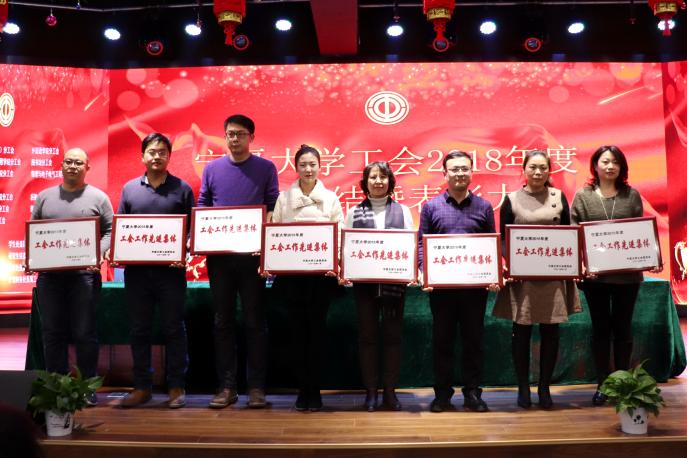 会上,校工会主席孙宝德做了2018年度工会总结报告,与会领导为先进集体、工会工作积极分子颁奖。