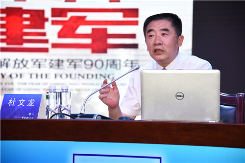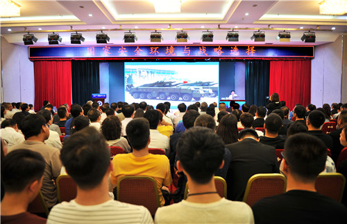杜文龙凭借其深厚的军事理论功底、详实的数据资料、生动的语言表达全面细致地剖析了我国周边安全的对策思考等问题。他既立足于现实,又放眼于未来,战略性地提出了一些国家安全对策,为台下的听众带来了一节生动的国防战略课。
