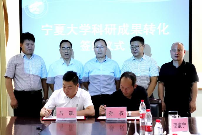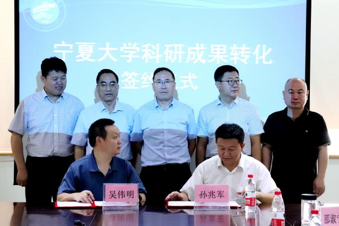 资源环境学院的孙兆军,农学院的孙权、王锐代表各自科研团队与宁夏艾发科技有限公司、宁夏绿星谷生态农业科技有限公司签订技术转化合同。