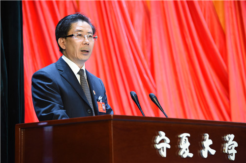 在主席台就座的还有宁夏职业技术学院党委书记赵利宁,宁夏师范学院党委书记李静,自治区科协党组书记、主席陈红缨,自治区党委统战部副部长杨继宏,自治区编办副主任王栋,自治区农业农村厅副厅长晁向阳,湖南工业大学党委委员、副校长范晓阳,宁夏医科大学党委副书记牛阳,北方民族大学党委副书记、纪委书记雷崇民,自治区党委组织部干部四处处长褚延涛,特邀列席大会的学校老领导及主席团其他成员。