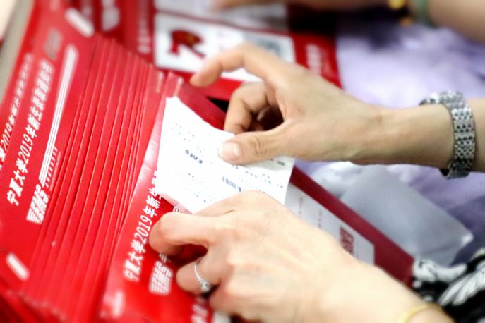 【永利集团304官网新闻中心讯 张景/文、图】7月19日,永利首批录取通知书正式开始发放。校长何建国、校党委副书记王宏伟来到永利招生录取现场检查指导工作。