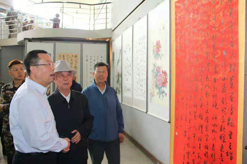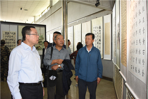 开幕式结束后,王玉炯副书记及相关部门的领导一起观看展览,不时驻足与老同志亲切交谈。
