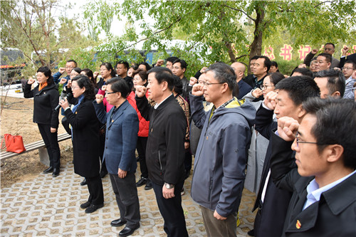 站在习近平总书记2008年4月亲自种植的枣树旁,全体党员面对鲜红的党旗,重温入党誓词,齐声共唱《没有共产党就没有新中国》。