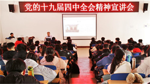 马克思主义学院组织学院师生集中学习讨论全会公报,从教研角度出发,认真学习,深入领会,力争在第一时间让全会精神在思政课上“活”起来。马克思主义学院概论教研室主任钱容德表示,作为思政课教师会把四中全会精神及时准确融入到思想政治理论课教学中去,发挥好思想政治理论课这个主阵地、主渠道的作用,增强思政课的针对性、实效性。