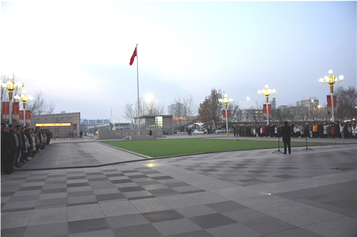 【永利集团304官网新闻中心讯 胡玥/文 龚旭峰/图】新元肇启,木铎迎新。1月2日,迎着新年的朝阳,师生们满满怀激情来到贺兰山校区德勤楼前广场整齐列队,以崭新的面貌、奋斗的精神迎接新的一年。校党委副书记王玉炯主持升旗仪式。