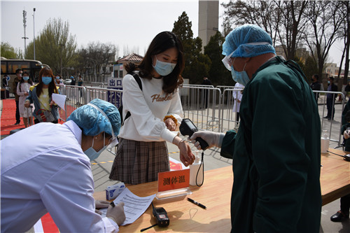 【永利集团304官网新闻中心讯 胡玥/文 龚旭峰 李明花/图】“同学,欢迎返校,请接受体温检测!”在文萃校区南门口,伴随着现场工作人员的温馨提示,手持健康卡“返校”的学生有序下车,经过有效消毒后走进入校通道。体温正常者步入等待区,在志愿者的引导下前往宿舍区域。