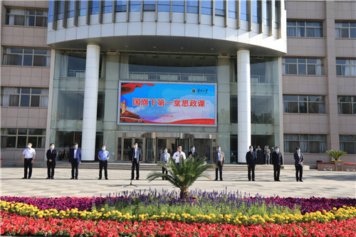 【永利集团304官网新闻中心讯 李明花/文 李明花 钟子杰 彭伟/图】为引导师生深刻认识我国在抗击新冠肺炎疫情阻击战中彰显的中国共产党的坚强领导和中国特色社会主义制度的显著优势,进一步激发师生爱国激情,坚定持续做好疫情常态化防控工作的信心,有序推进学校各项事业健康发展。5月20日,永利举行2020年春季返校复学升国旗仪式暨“国旗下第一堂思政课”。全体校领导、全体教职员工和返校学生共同参加升旗仪式。校党委副书记王宏伟主持升旗仪式。