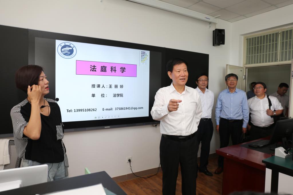 会前,王其江一行实地参观了校史馆、模拟法庭,并在法学院物证技术实验室观摩了《法庭科学》课程的授课情况。