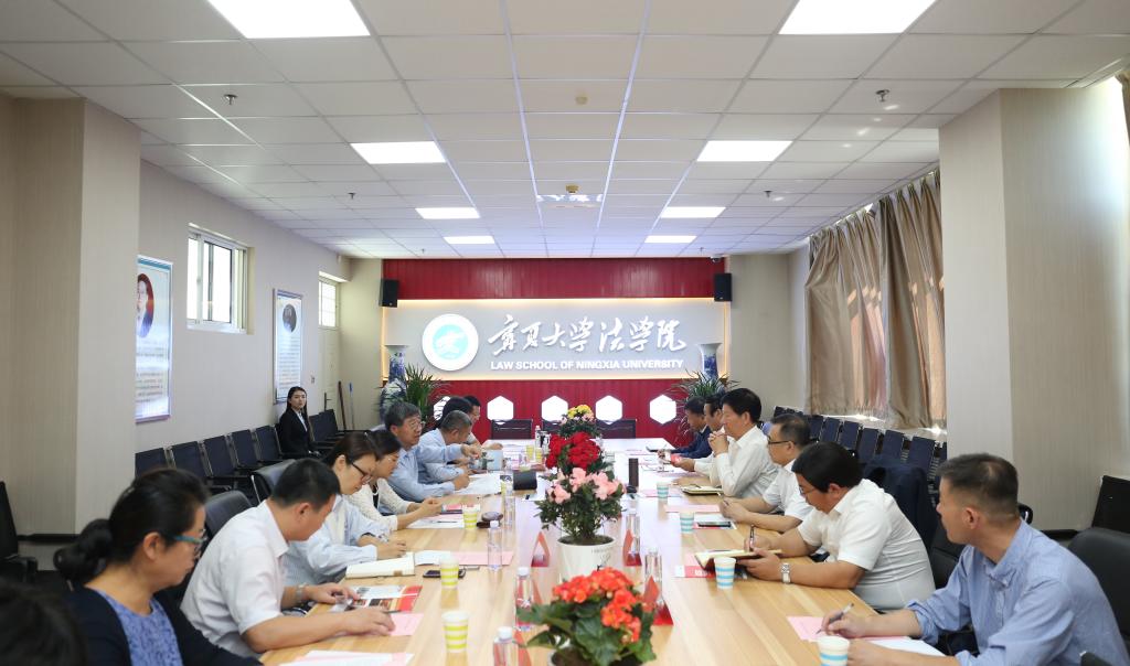 【永利集团304官网新闻中心讯 苏雯/文 苏雯 法学院/图】9月8日,中国法学会党组成员、副会长王其江一行来永利调研法治人才培养机制建设的组织和推动等情况。校长何建国、副校长郎伟共同会见。自治区法学会副会长、宁夏社科院院长张廉陪同调研。