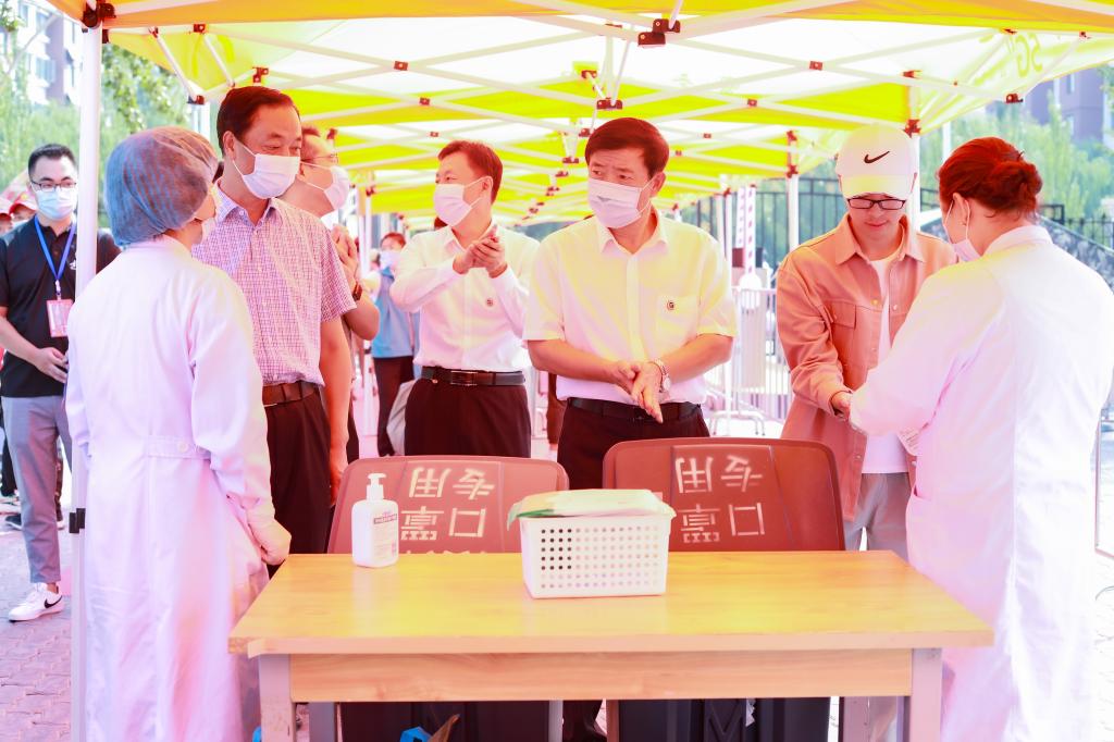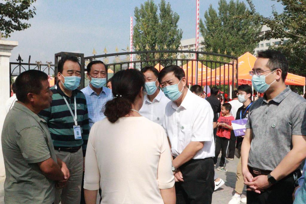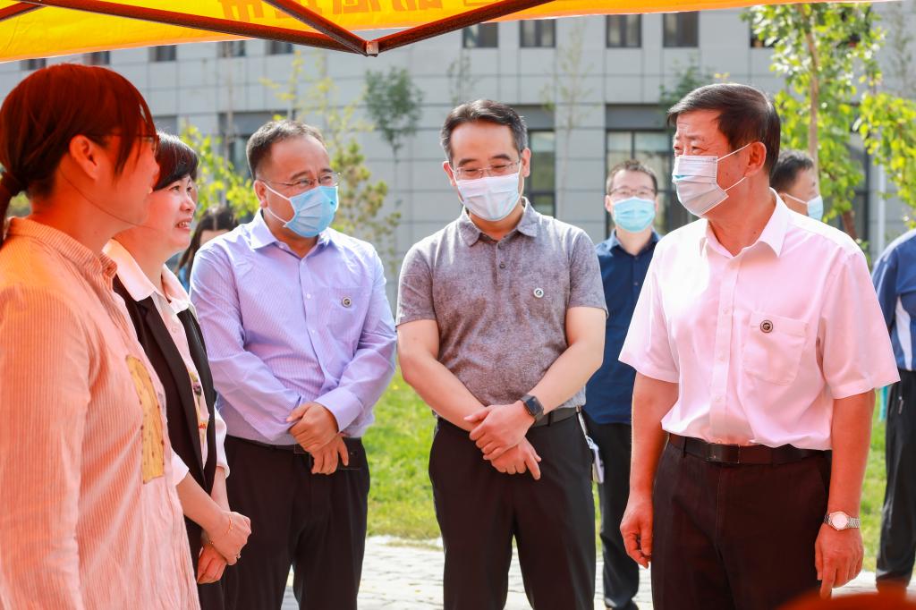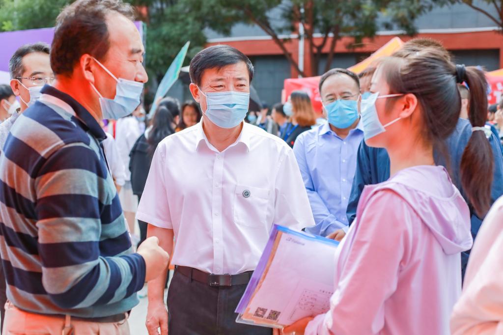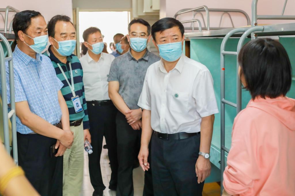 随后,何建国一行来到文萃校区迎新点,参观并检查了迎新点摆放的学院特色展板、迎新服务、绿色通道设置情况等,观看了音乐学院快闪节目,认真聆听相关负责人介绍,详细询问并了解学生返校时间、流程、步骤等相关情况,慰问了为学生返校工作忙碌的志愿者,与正在办理返校手续的食品与葡萄酒学院、生命科学学院、化学化工学院的新生们进行交流。何建国强调,学校各相关部门要充分做好学生返校后的保障服务工作,充分考虑到各个年级学生的需求,教育引导全体教职员工和学生严格遵守防疫规定,确保师生健康、校园安全稳定。