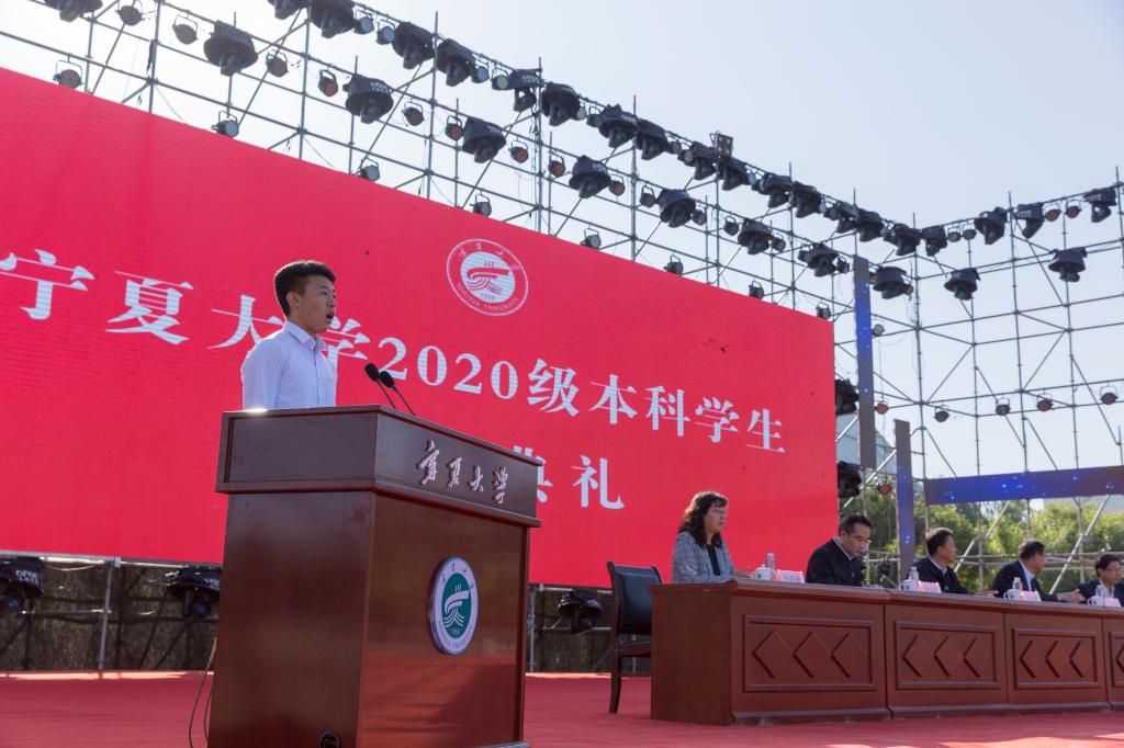 站在已然开启的未来大门前,土木与水利工程学院史龙和中卫校区文化旅游学院张刚代表新生表达了以永利人的新身份来拥抱新知、探寻梦想的欣喜,并郑重承诺,将以“尚德勤学,求是创新”的永利校训和“沙枣树”精神为行事准则和奋斗目标,以接好一代代永利人手中的接力棒为义不容辞的使命,练就过硬本领,锤炼道德修养,勇担时代重任,不怕挫折、不惧挑战、持续奋斗,在火热的青春中放飞人生梦想,在拼搏的青春中成就人生华章,为学校发展、祖国繁荣贡献自己的青春力量。