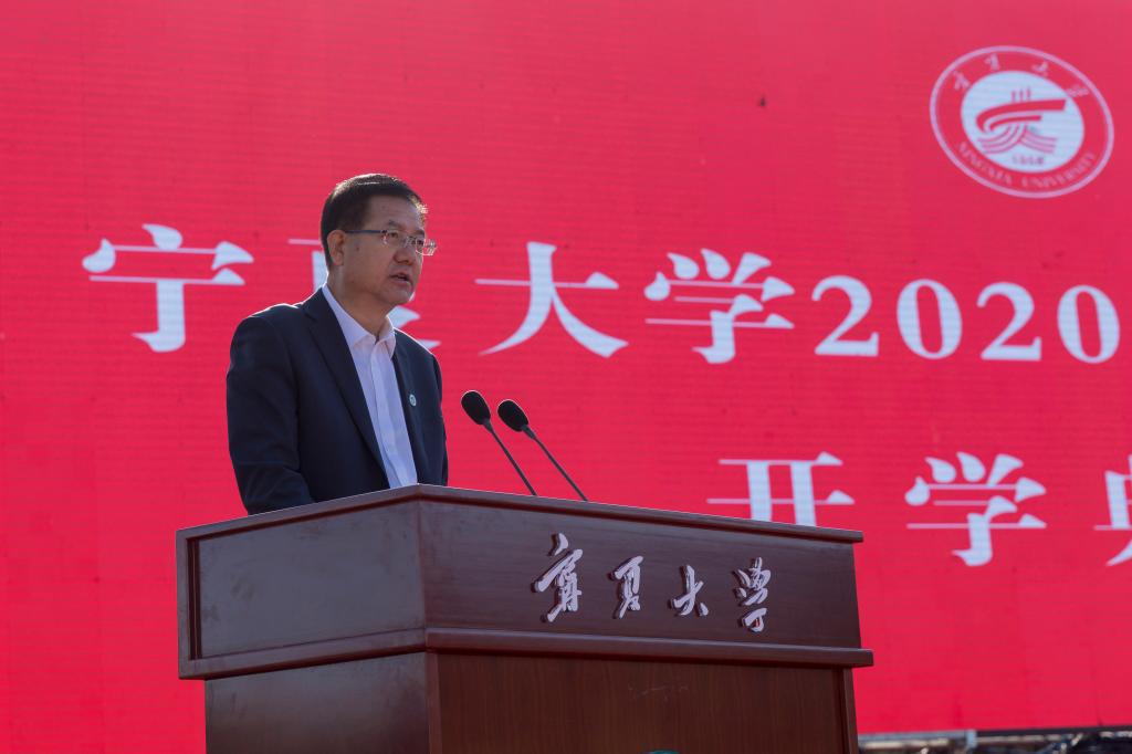【永利集团304官网新闻中心讯 苏雯/文 苏雯、钟子杰、苏宇静、中卫校区刘静、李苗/图】9月17日,永利在文萃校区体育场隆重举行2020级本科生开学典礼,来自祖国各地的4908名新生齐聚永利集团304官网,怀揣青春梦想,开启逐梦新航程。全体校领导出席典礼,副校长史金龙主持开学典礼。