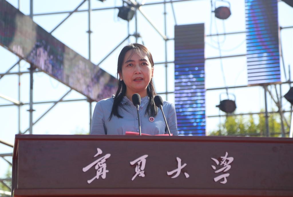 化学化工学院教师李平作为教师代表发言,她鼓励同学们肩负强国使命,投身伟大实践,坚定理想信念,确立远大志向,坚守公平正义,坚持知行合一。她表示,作为教师,她也将恪尽职守,率先垂范,不忘立德树人初心,牢记为党育人、为国育才使命,成为同学们成长的引路人。