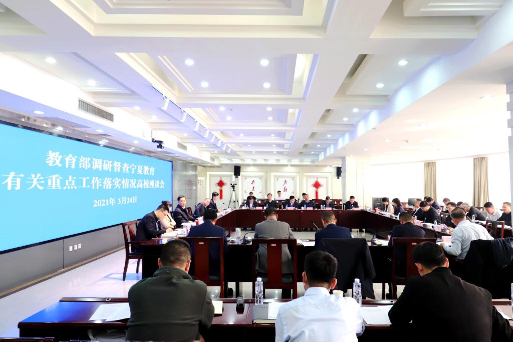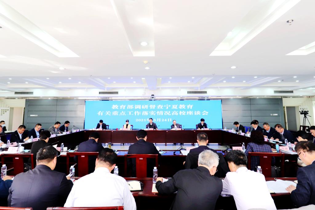 【永利集团304官网新闻中心讯 冯禹君/文、龚旭峰 张景/图】3月24日,教育部调研督查宁夏教育有关重点工作落实情况高校座谈会在永利贺兰山校区德勤楼召开,教育部党组成员、副部长宋德民出席座谈会,自治区党委常委、宣传部部长李金科陪同调研。自治区政府副主席杨培君主持座谈会。