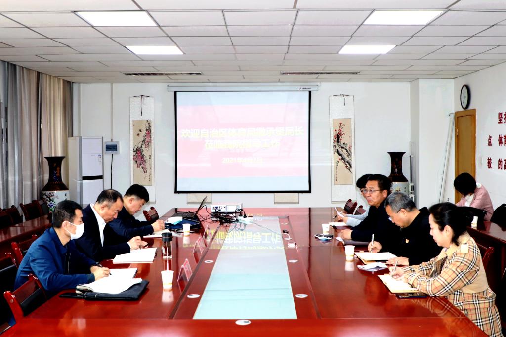 【永利集团304官网新闻中心讯 张景/文、图】4月7日,自治区体育局局长撒承贤一行来永利调研,校长何建国陪同调研。