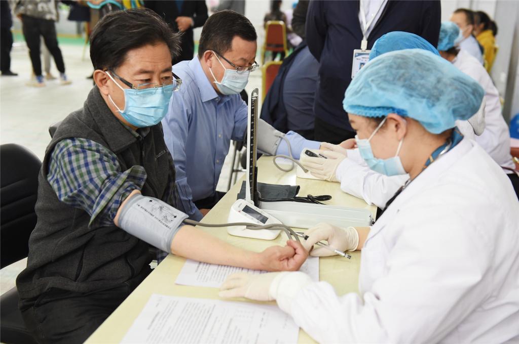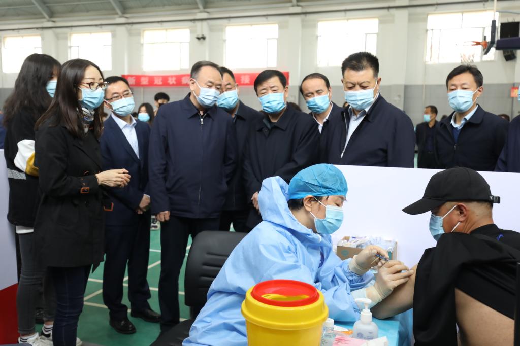 4月10日,接种首日,自治区卫生健康委党组书记、副主任田丰年在校长何建国、副校长刘炎胜陪同下深入现场,现场查看接种工作进展情况,并对接种工作提出要求。