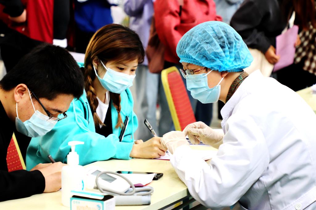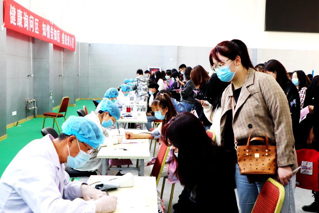 接种现场,师生携带本人身份证,穿着宽松的衣服,配合现场工作人员询问,如实报告本人健康状况,如实填写知情同意书,并确认第二剂次接种时间。人员信息核实、健康咨询、知情同意书填写、身份证信息录入、疫苗接种、现场留观各环节环环相扣,学校相关职能部门以及志愿者协同配合,前来接种新冠病毒疫苗的师生井然有序排队等候,分时段、分批次、安全、有序进行疫苗接种。