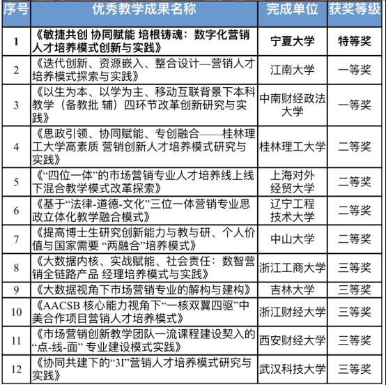 【永利集团304官网新闻中心讯 创新创业学院】10月22日-24日,中国高等院校市场学研究会教学年会暨营销学科发展论坛在中央财经大学举行。经过前期项目申报、三方评审、展示汇报、专家评选等环节,永利创新创业学院冯蛟团队获优秀教学成果特等奖和优秀教改论文三等奖。