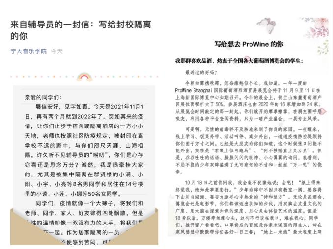 在党委学生工作部(学生处)的统一安排下,全体学工人因事而化、化“疫”为机,为丰富疫情防控期间的广大学生的精神文化生活、开展行之有效的“空中”思想政治教育,举办了形式多样的线上活动。各学院相继开展防疫知识竞答、云中党课、线上讲座、主题云班会、线上读书会、红色观影、“云查宿”、网络团体心理辅导、班徽设计大赛、大学生就业创业大赛初赛等活动以凝聚集体意识,并通过《永利集团304官网辅导员的一封信:写给封校隔离的你》向广大学生传递信心、空投能量,在充实学生们疫情防控期间的在校学习生活、强化纪律观念的同时,提振了他们同心抗“疫”的决心和信念,进一步培养了良好的精神风貌,引导广大学生勠力同心、共克时艰,为战胜疫情做“加法”。