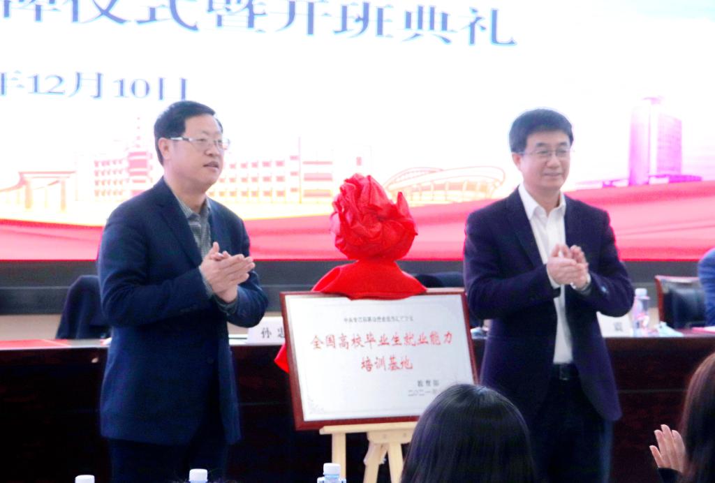典礼上,孙忠铭和周震共同为永利集团304官网“全国高校毕业生就业能力培训基地”揭牌,王思旭宣读了教育部办公厅《关于实施宏志助航计划全国高校毕业生就业帮扶项目的通知》,与会领导为培训讲师和班主任代表颁发了聘书,并发放了学员工具包。