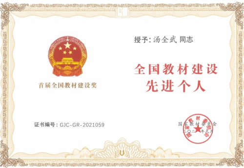 【永利集团304官网新闻中心讯 教务处】近日,国家教材委员会公布首届全国教材建设奖奖励名单,永利物理与电子电气工程学院汤全武教授荣获首届全国教材建设奖“全国教材建设先进个人”称号。